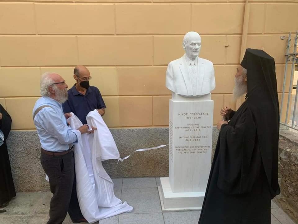 Σε μια σεμνή τελετή, το απόγευμα της Τετάρτης 21 Σεπτεμβρίου, πραγματοποιήθηκαν στον κήπο της Πνευματικής Εστίας Σπάρτης, τα αποκαλυπτήρια της προτομής του αείμνηστου Σπαρτιάτη Νίκου Γεωργιάδη.