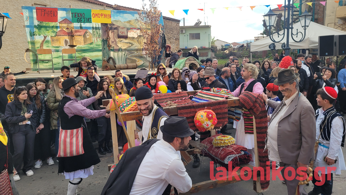 Παρουσία πολυάριθμων προσκεκλημένων και φέτος, η αρκούδα, η λατέρνα με τις τσιγγάνες, η σούστα, ο αργαλειός, τα βόδια, οι μεθύστακες, οι αγρότες, το δαφνιώτικο κρασί και φυσικά αυτό κάθε αυτό το «γαμήλιο» γεγονός, χάρισαν σε όλους τους επισκέπτες ανεπανάληπτες στιγμές και άφθονο γέλιο. Το δε θεατρικό που ακολούθησε, εμπνευσμένο από την επικαιρότητα και με τίτλο «Γραφείο τεκνοθεσίας ομόφυλων», περιελάμβανε σαρκαστικό χιούμορ που καθήλωσε το κοινό.