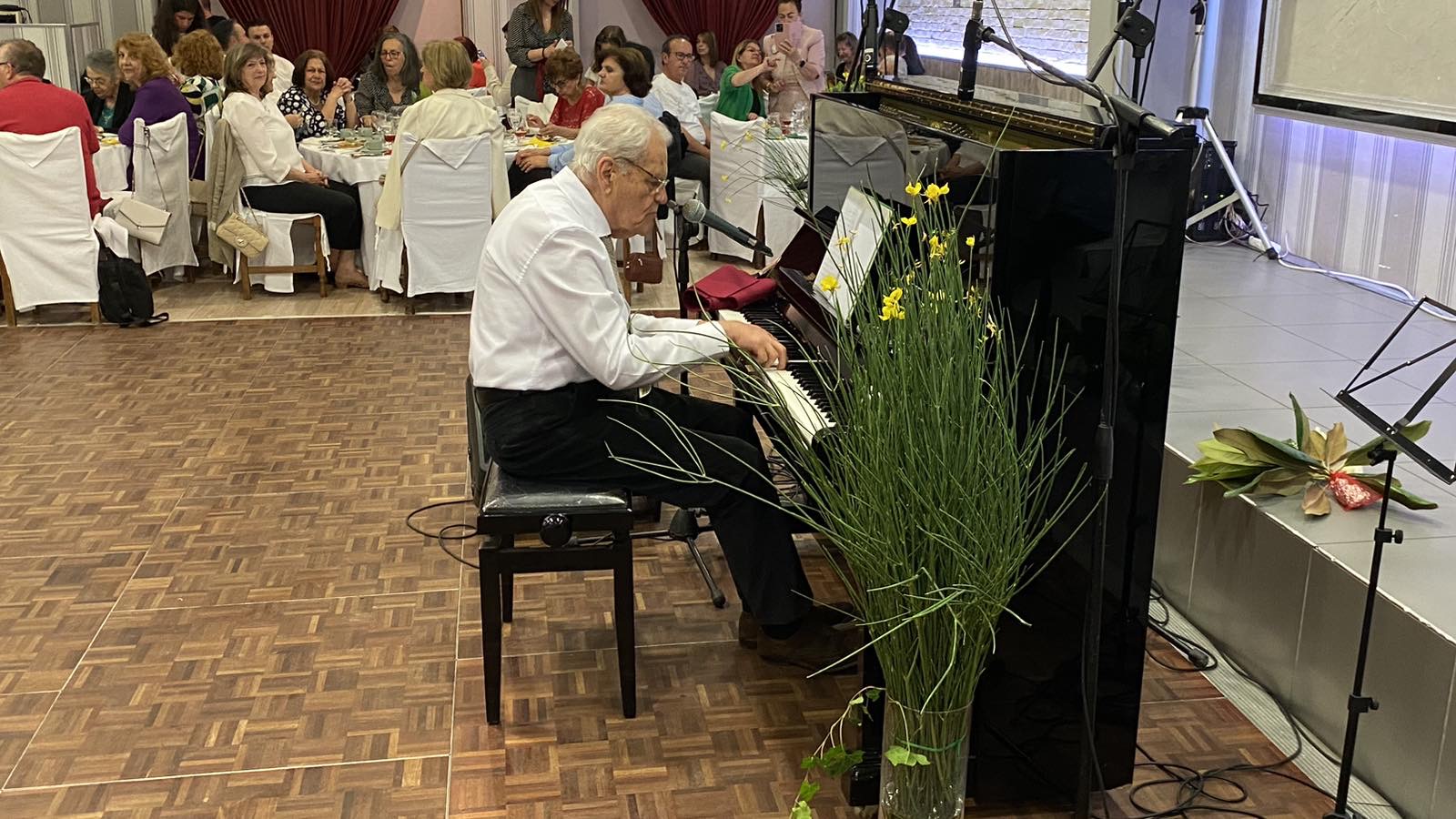 Η βραδιά έκλεισε μουσικά με τον Νίκο Ψυχογυιό (πιάνο και τραγούδι) σε συνθέσεις Δ. Μούτση.