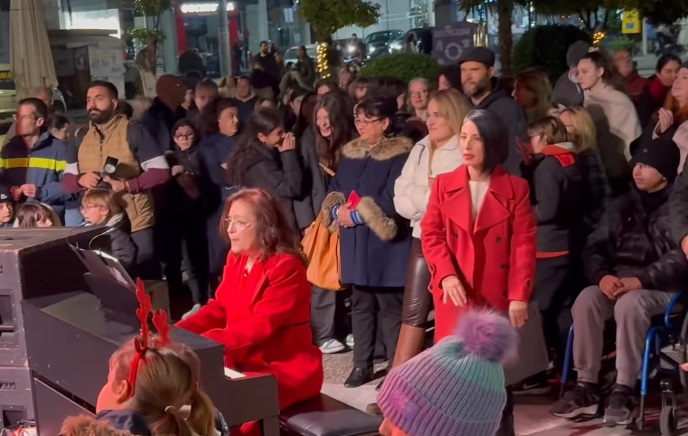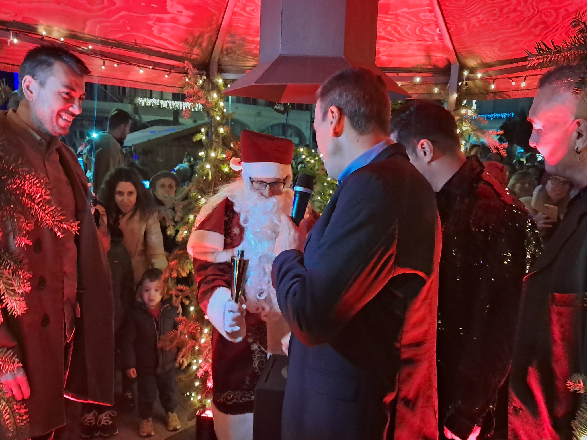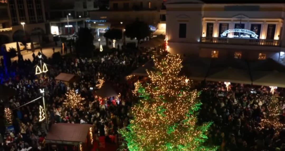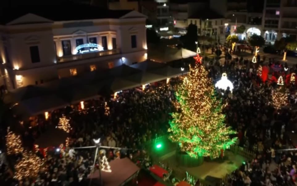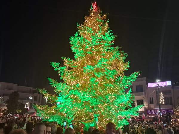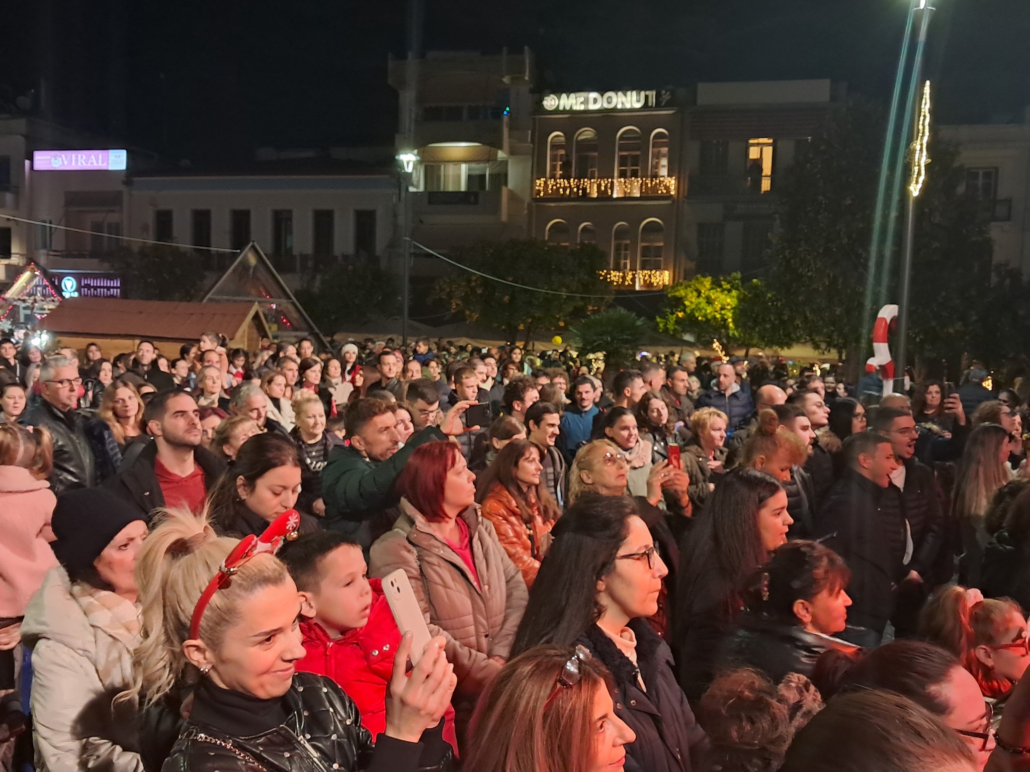 Αμέσως μετά, ξεκίνησε η καθιερωμένη αντίστροφη μέτρηση και ακριβώς στο «μηδέν», ο δήμαρχος πάτησε το κουμπί και το δένδρο φωταγωγήθηκε, εκπέμποντας μαγικά το χαρμόσυνο μήνυμα των εορτών σε κάθε μήκος και πλάτος της πλατείας.