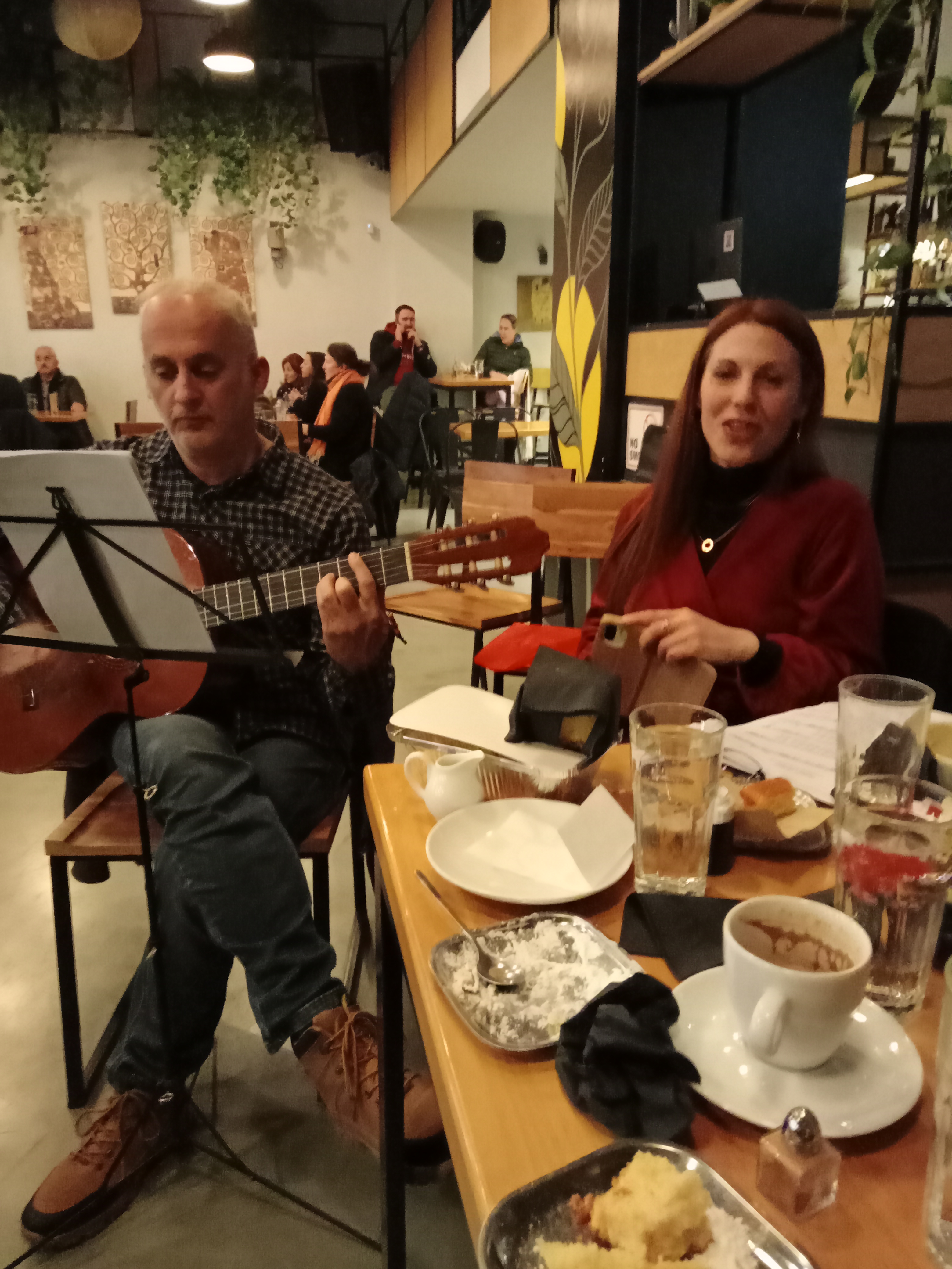 Στη συνέχεια ακολούθησε μικρό μουσικό πρόγραμμα με τη συμμετοχή όλων των παρευρισκομένων. Υπό τους ήχους της κιθάρας του Γιάννη Κονιδιτσιώτη, ερμηνεύτηκαν τα έντεχνα τραγούδια του Στέλιου Καζαντζίδη.