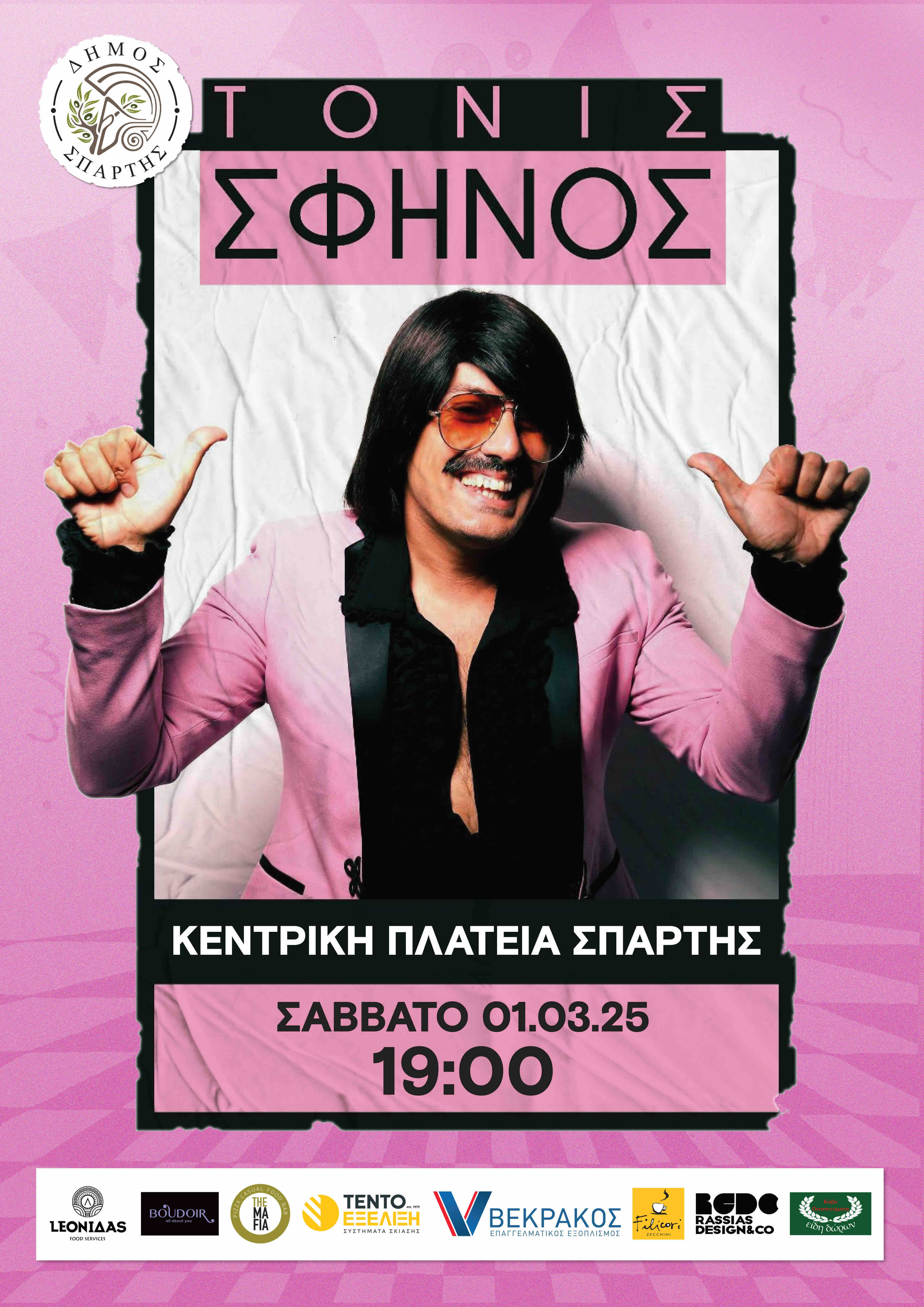 - 19.00: Ο γνωστός entertainer και μοναδικός στο είδος του, Τόνις Σφήνος, υπόσχεται να απογειώσει το κοινό με μια εκρηκτική μουσική συναυλία!