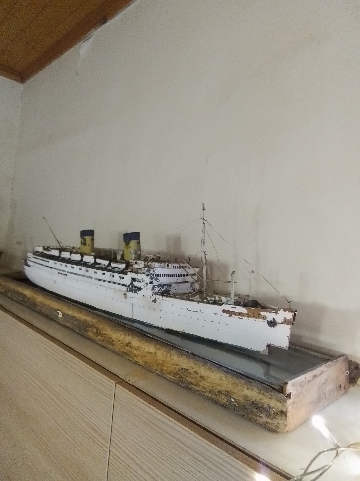 Στην είσοδο της αίθουσας της ημερίδας υπήρχε ωραίο χειροποίητο ομοίωμα (μοντέλο) του πλοίου Φρειδερίκη, που μαζί με το Ολυμπία μετέφερε μεταπολεμικά χιλιάδες μετανάστες στην Αμερική. Ας σημειωθεί ότι τα ταξίδια στην Αμερική διεκπεραίωνε τότε στη Σπάρτη, διευκολύνοντας τους αποδημούντες, το ταξιδιωτικό πρακτορείο Αφών Αποστολάκου, όπου και διασώθηκε το ομοίωμα του πλοίου.