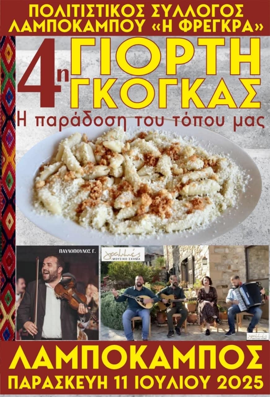 Ραντεβού με την παράδοση και τη γεύση δίνει ο Πολιτιστικός Σύλλογος Λαμπόκαμπου «Η Φρέγκρα», στην 4η Γιορτή Γκόγκας, που θα πραγματοποιηθεί την Παρασκευή 11 Ιουλίου το βράδυ στην πλατεία του Λαμπόκαμπου Δ. Μονεμβασίας.