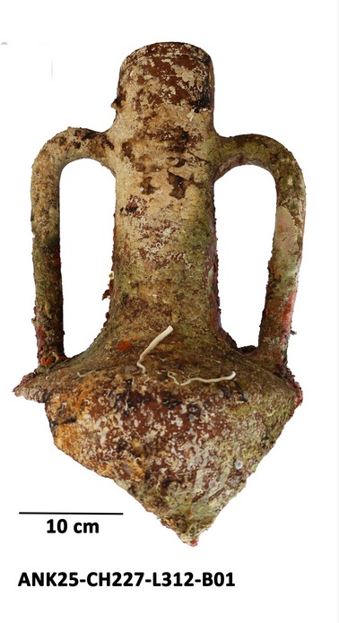 Ο εντοπισμός Χιακών αμφορέων προέλευσης σε δύο διαφορετικές περιοχές του ναυαγίου αποκαλύπτει μια μεγαλύτερη τυπολογική ποικιλία απ' ό,τι είχε καταγραφεί με βάση την ως τώρα έρευνα. Στα κεραμικά ευρήματα προστίθεται και ένα πήλινο ιγδίο (λεκάνη με προχοή), σκεύος πολτοποίησης και ανάμειξης τροφίμων, το οποίο προσφέρει πολύτιμες πληροφορίες για τις διατροφικές πρακτικές και την καθημερινή ζωή στο πλοίο.