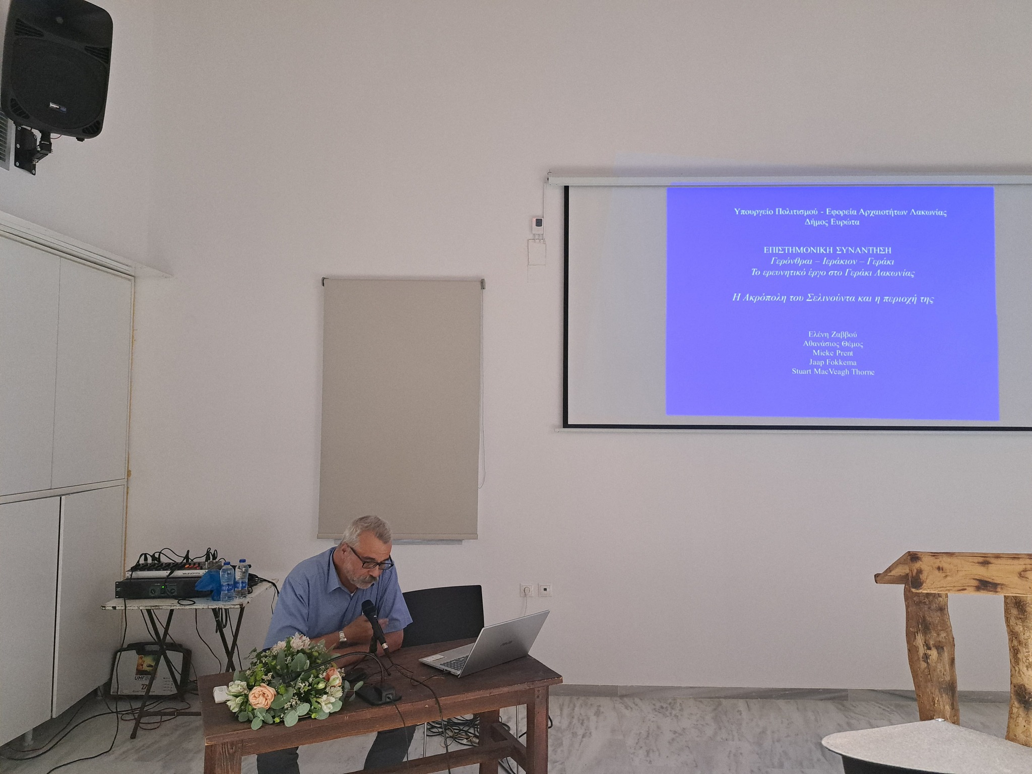 Αρχαιολόγοι του Υπουργείου Πολιτισμού, που υπηρετούν στην Εφορεία Αρχαιοτήτων Λακωνίας και το Επιγραφικό Μουσείο, καθώς και επιστήμονες του Vrije Universiteit Amsterdam, παρουσίασαν το έργο της Αρχαιολογικής Υπηρεσίας στην περιοχή, την έρευνα στην ακρόπολη των αρχαίων Γερονθρών και στο κάστρο Γερακίου, καθώς επίσης στην αρχαία κώμη του Σελινούντα και το μεταξύ αυτής και των αρχαίων Γερονθρών ιερό στα Ρυκάκια Γερακίου.