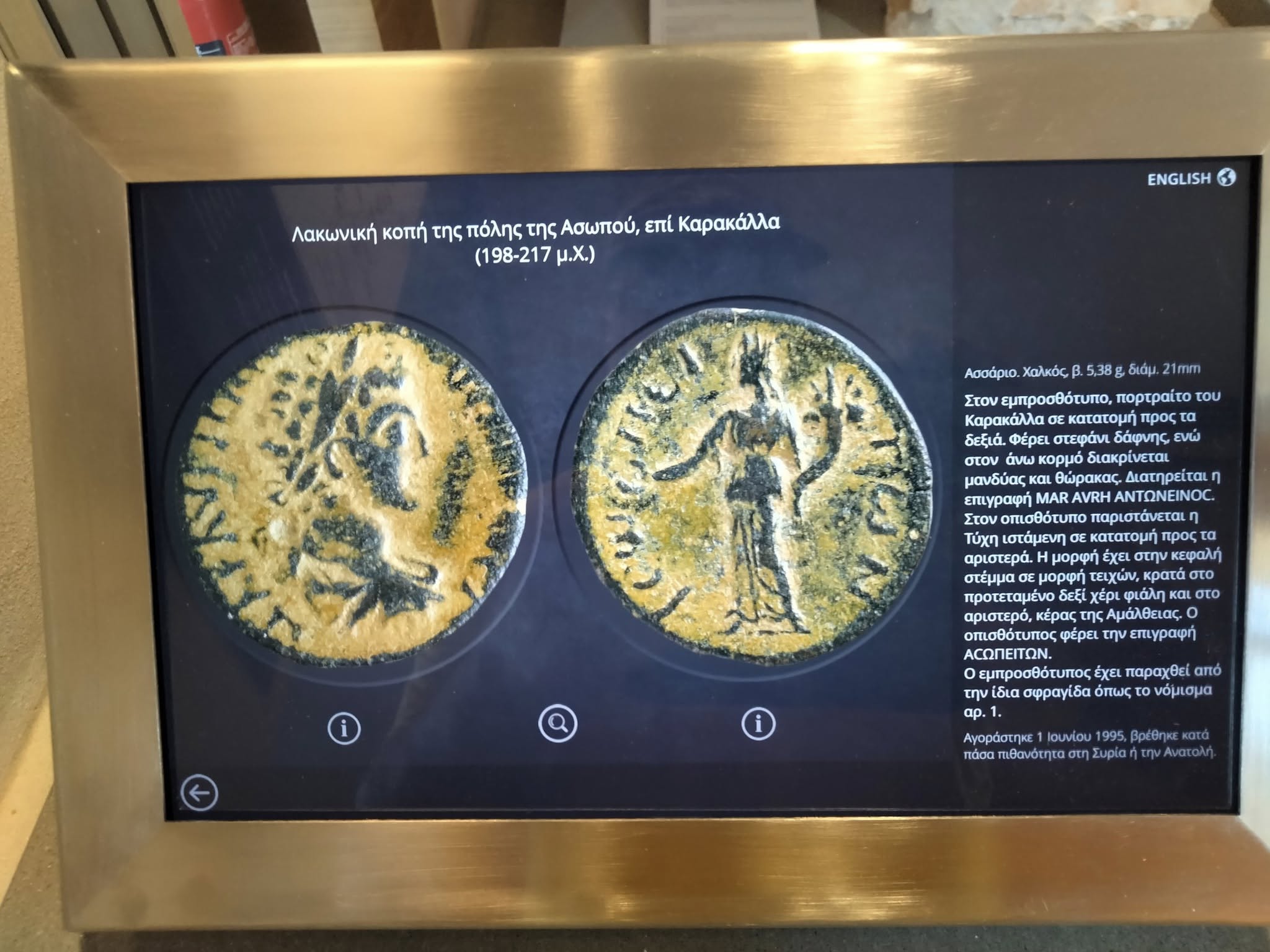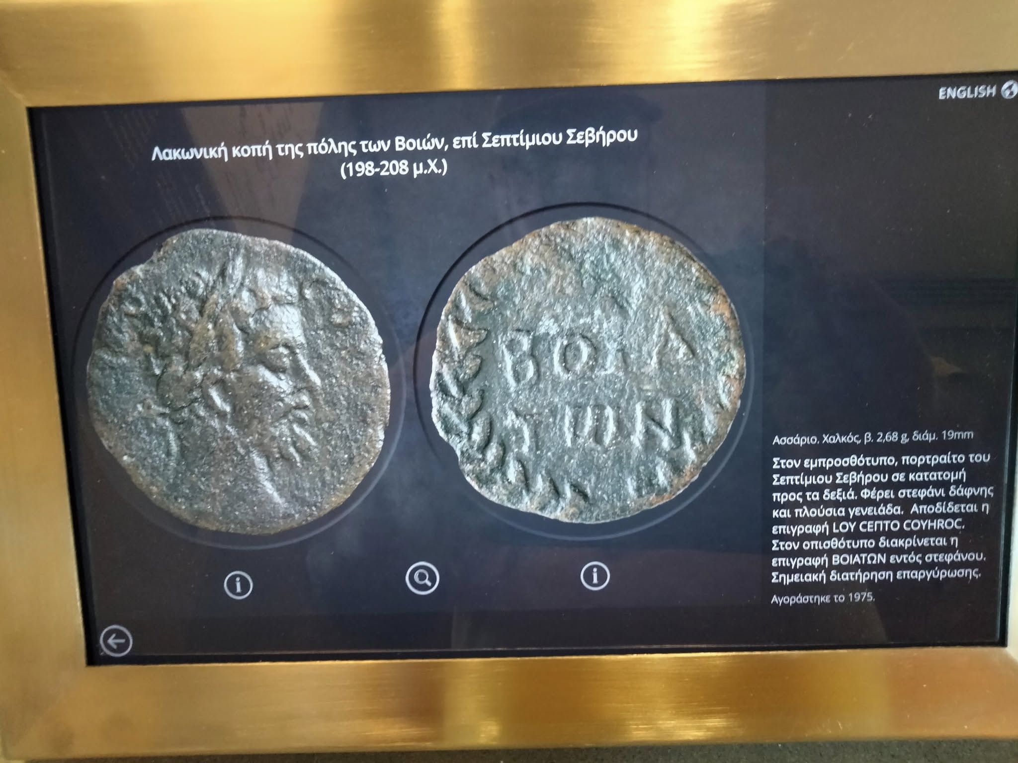 Η νέα αυτή συλλογή, που φιλοξενείται μόνιμα στο μουσείο, περιλαμβάνει 14 αρχαία νομίσματα, τα οποία χρονολογούνται από το 198 μΧ έως το 217 μΧ και σχετίζονται με το «Κοινό των Ελευθερολακώνων», μία συμμαχία 18 λακωνικών πόλεων κατά την περίοδο της Ρωμαϊκής Αυτοκρατορίας. Από αυτά, τα 10 προέρχονται από την πόλη των Βοιών και τα 4 από τον Ασωπό.