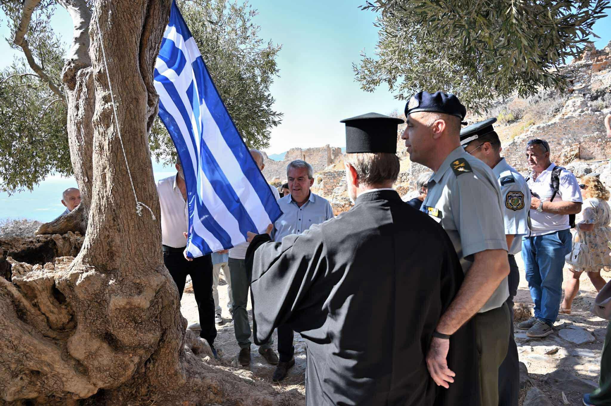 Αρχικά, παρουσία εκπροσώπων Αρχών, φορέων και απλών πολιτών, τελέστηκε η καθιερωμένη Θεία Λειτουργία στον Ιερό Ναό Αγίας Σοφίας. Με το πέρας του εκκλησιασμού έλαβε χώρα η σεμνή τελετή αναγνώρισης και σήμανσης της ελιάς, που έχει ενταχθεί από τον Μάρτιο του 2025 στο Δίκτυο Αιωνόβιων Δέντρων της Επανάστασης. Η Ελιά της Αγίας Σοφίας, ποικιλίας Αθηνολιά, αποτελεί χαρακτηριστικό σύμβολο της Μονεμβασιάς. Με τις ρίζες της να χάνονται βαθιά στον χρόνο, η στρατηγική της θέση δίπλα στον βυζαντινό ναό της επέτρεπε να «αγναντεύει» το Μυρτώο Πέλαγος και να παρακολουθεί τον ναυτικό αγώνα των Ελλήνων κατά του τουρκοαιγυπτιακού στόλου, σύμφωνα με την παράδοση. Υπήρξε επίσης θεματοφύλακας της παράδοση της πόλης στους Έλληνες από τους Οθωμανούς στις 23 Ιουλίου 1821, «είδε» τους οπλαρχηγούς να συγκεντρώνονται κάτω από τον ίσκιο της, υψώνοντας την ελληνική σημαία στα τείχη, ενώ «άκουσε» την καμπάνα του Ναού του Ελκόμενου Χριστού να αναγγέλλει το χαρμόσυνο μήνυμα της ελευθερίας.