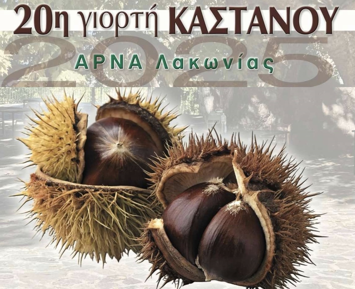 Η 20ή Γιορτή Κάστανου είναι γεγονός και θα πραγματοποιηθεί το τριήμερο 24, 25 & 26 Οκτωβρίου στην καταπράσινη Άρνα Λακωνίας, στις πλαγιές του Ταϋγέτου. Η γιορτή που έγινε θεσμός στο ορεινό χωριό της Φάριδος, τιμά το σήμα κατατεθέν τοπικό προϊόν της περιοχής και αποτελεί μια μοναδική ευκαιρία για ντόπιους και επισκέπτες να απολαύσουν γεύσεις, μουσικές, χορούς και την αυθεντική φιλοξενία της λακωνικής γης.