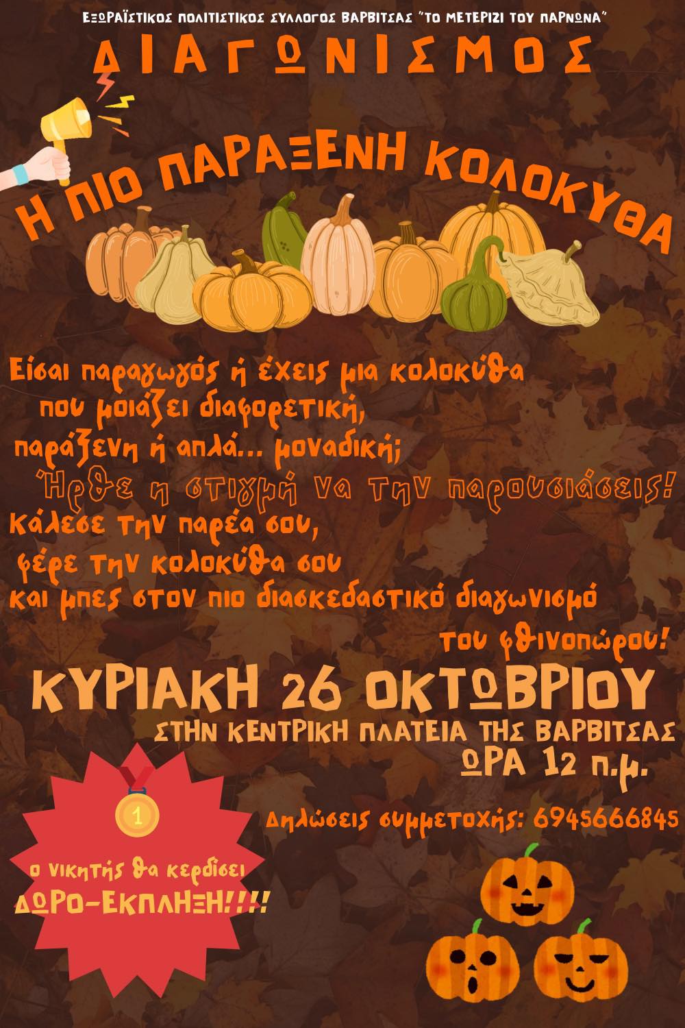 12:00 – Διαγωνισμός πιο παράξενης κολοκύθας