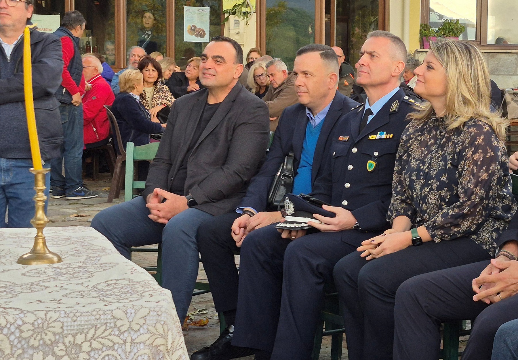 Ο πρόεδρος της Κοινότητας, Παναγιώτης Λαμπριανάκος, καλωσόρισε τους εκλεκτούς προσκεκλημένους και τους επισκέπτες, ενώ χαιρετισμό απηύθυναν ο υφυπουργός Εθνικής Άμυνας και βουλευτής Λακωνίας Αθανάσιος Δαβάκης, η βουλευτής Νάγια Γρηγοράκου, ο αντιπεριφερειάρχης Λακωνίας, Θεόδωρος Βερούτης και ο οικοδεσπότης δήμαρχος Σπάρτης, Μιχάλης Βακαλόπουλος. Στα εγκαίνια παρευρέθηκαν, επίσης, οι αντιδήμαρχοι Οικονομικών Υπηρεσιών Άγγελος Αντωνάκος, Τεχνικών Υπηρεσιών, Παναγιώτης Παυλής, Διαχείρισης Αδέσποτων Ζώων-Πολιτικής Προστασίας-Τουρισμού-Πληροφορικής, Δημοσθένης Κακούρος, Αγροτικής Ανάπτυξης-Άρδευσης-Πρασίνου, Ευστράτιος Κοκκορός, Κοινωνικής Πολιτικής-Παιδείας-ΔΕ Μυστρά, Θεοφάνης Λάζαρης και Διοικητικών Υπηρεσιών – ΔΕ Φάριδος, Αδαμαντία Βαγιακάκου-Δογαντζή. Παρόντες, επίσης, ήταν μέλη του Δημοτικού Συμβουλίου Σπάρτης και ειδικότερα ο πρόεδρος της ΔΕΥΑΣ, Δημήτρης Αρβανίτης, η επικεφαλής της μείζονος αντιπολίτευσης, Ντία Τζανετέα και οι δημοτικοί σύμβουλοι της μείζονος αντιπολίτευσης, Αναστάσιος Γκολέμης και Νικόλαος Τσούκλερης. Μεταξύ των εκλεκτών προσκεκλημένων ήταν ο Αστυνομικός Διευθυντής Λακωνίας, Κωνσταντίνος Σταματόπουλος και ο Αστυνομικός Υποδιευθυντής, Ζάχος Αγρανιώτης.
