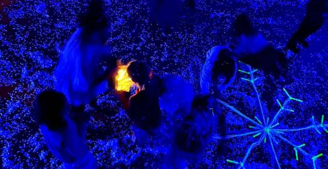 Το εργαστήριο στήθηκε μέσα σε ένα σκηνικό βασισμένο στο λευκό χρώμα, τον ατμοσφαιρικό φωτισμό και τη δημιουργία ενός φανταστικού τοπίου, όπου τα παιδιά κλήθηκαν να λύσουν ένα μυστήριο. Οδηγός τους ήταν ένας παλιός χάρτης που τα καθοδηγούσε από σταθμό σε σταθμό, μέχρι να ανακαλύψουν τους «χαμένους» λευκούς κρυστάλλους.