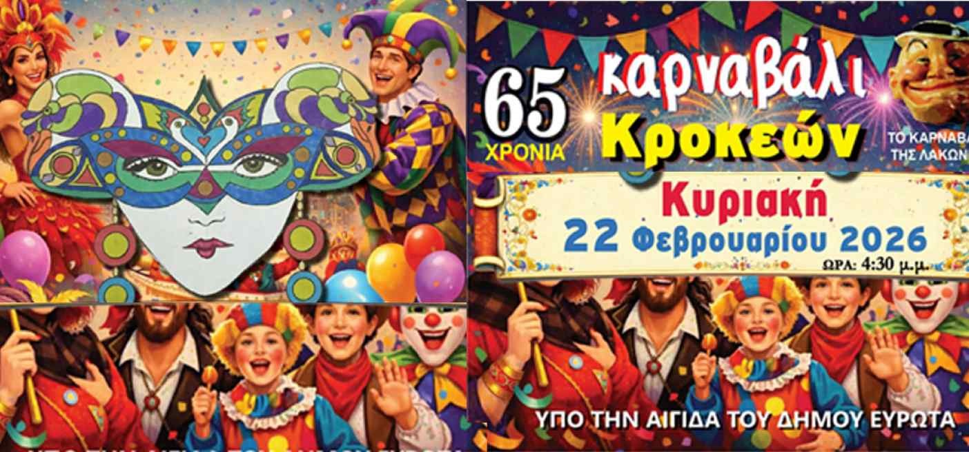 Μία από τις πιο αγαπημένες και ιστορικές αποκριάτικες εκδηλώσεις της Λακωνίας επιστρέφει και φέτος, έτοιμη να χαρίσει μοναδικές στιγμές χαράς και διασκέδασης σε μικρούς και μεγάλους. Την τελευταία Κυριακή των Αποκριών, 22 Φεβρουαρίου, το 65ο Καρναβάλι Κροκεών, ένα από τα παλαιότερα καρναβάλια της Πελοποννήσου, ανανεώνει το ραντεβού του με το κοινό, συνδυάζοντας την πλούσια παράδοση με σύγχρονα στοιχεία γιορτής και ψυχαγωγίας.