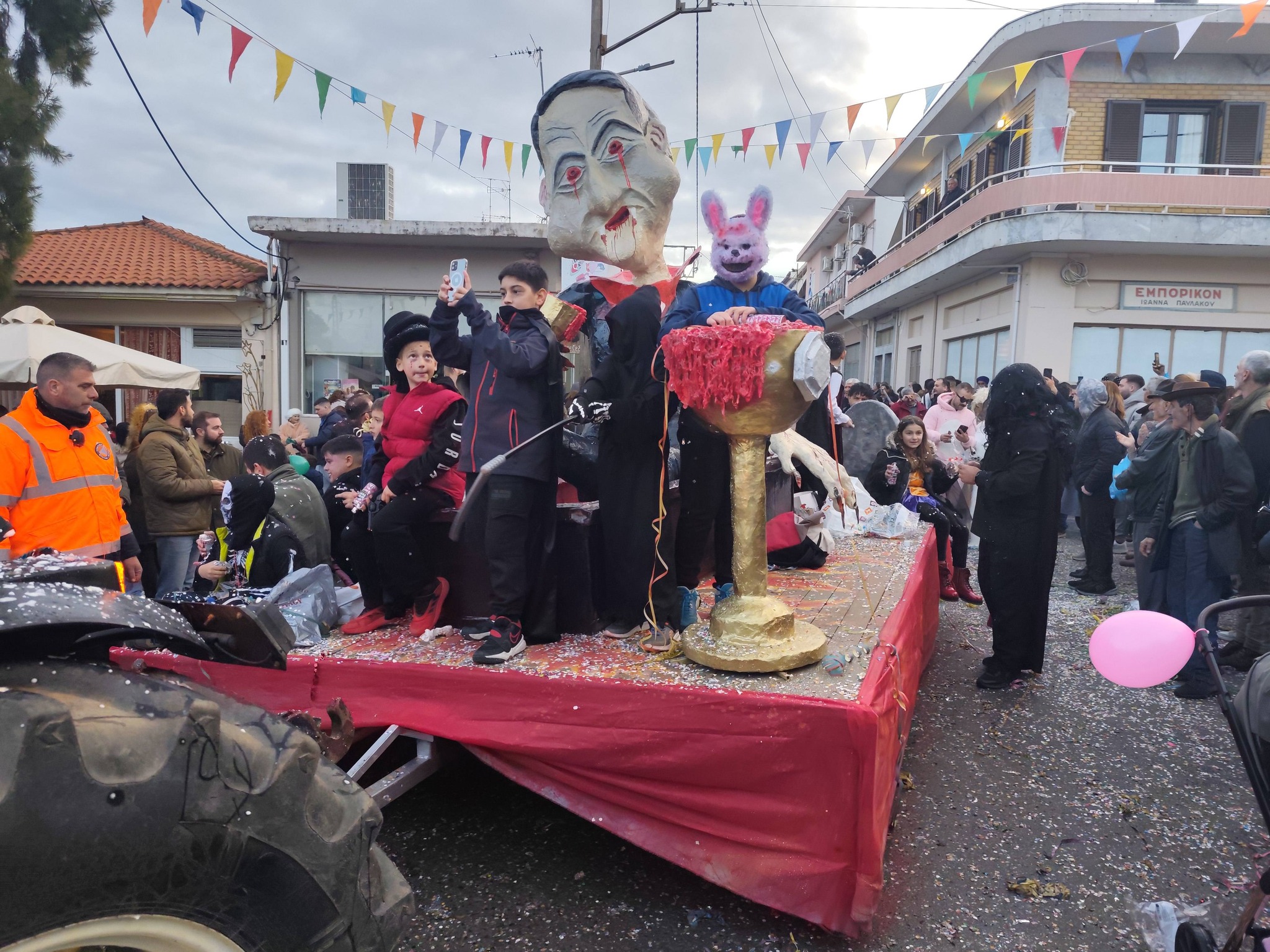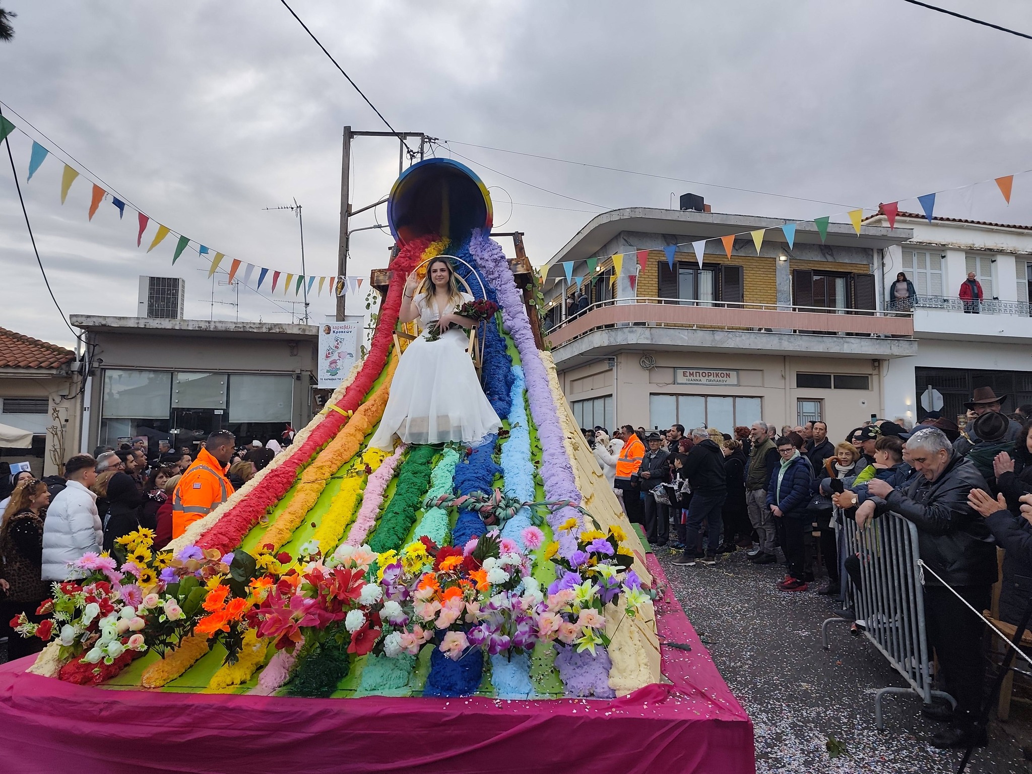 Η κεντρική πλατεία και οι γύρω δρόμοι πλημμύρισαν από δεκάδες καρναβαλιστές και θεατές. Τα άρματα, αποτέλεσμα πολύμηνης προετοιμασίας και συλλογικής δουλειάς, ξεχώρισαν για την ευρηματικότητα και τη σατιρική τους διάθεση. Θέματα εμπνευσμένα από την κοινωνική πραγματικότητα, την επικαιρότητα και την καθημερινότητα παρουσιάστηκαν με χιούμορ, αυτοσαρκασμό και έντονη καλλιτεχνική διάθεση. Μεταξύ άλλων ξεχώρισε το πολύχρωμο άρμα με τη «νύφη», στολισμένο με λουλούδια και έντονα χρώματα, έδωσε μια εικόνα χαράς και αισιοδοξίας, συμβολίζοντας τη γιορτή της ζωής και της άνοιξης.