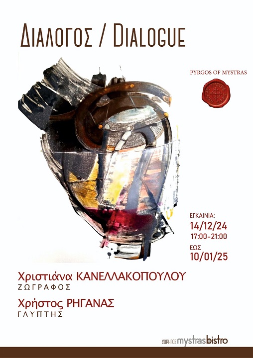 Με τον τίτλο «Διάλογος», οι δύο καλλιτέχνες επιδίωξαν όχι απλώς να παρουσιάσουν έργα, αλλά να δημιουργήσουν μια πραγματική συνομιλία ανάμεσα στη φόρμα και το χρώμα, το υλικό και την αίσθηση, το γήινο και το ουράνιο. Η επιλογή του Μυστρά, ενός τόπου φορτισμένου με ιστορία και αιώνια πολιτισμική βαρύτητα, ενίσχυσε αυτή την πρόθεση: τα έργα του Ρηγανά και οι ζωγραφικές αναζητήσεις της Κανελλακοπούλου αναπτύχθηκαν μέσα σ’ έναν χώρο όπου το φως, το υλικό και ο χρόνος συνυπάρχουν με το παρελθόν με τρόπους που διεγείρουν τον στοχασμό.