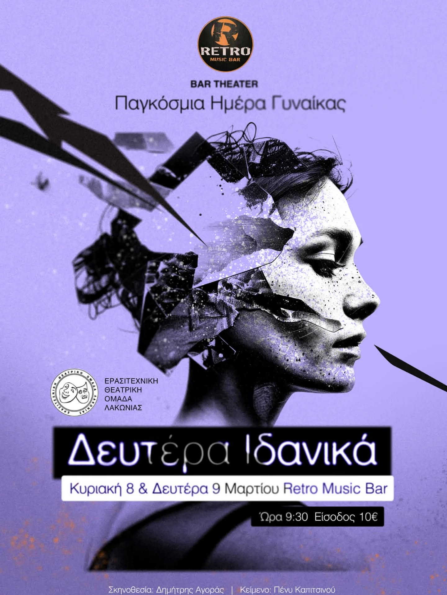 Οι παραστάσεις θα πραγματοποιηθούν την Κυριακή 8 και τη Δευτέρα 9 Μαρτίου, με ώρα έναρξης στις 9:30 μ.μ., στο αγαπημένο χώρο του Retro Music Bar που για τη βραδιά θα μετατραπεί σε μια μοναδική θεατρική σκηνή. Η είσοδος έχει οριστεί στα 10 ευρώ.