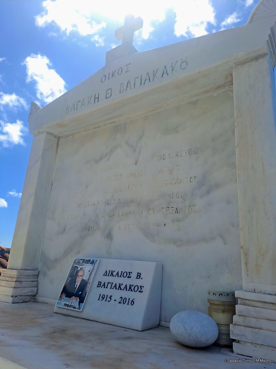 Με σεμνότητα και συγκίνηση τελέστηκε, τη Δευτέρα (30/3), τρισάγιο στον τάφο του σπουδαίου γλωσσολόγου, Δικαίου Β. Βαγιακάκου, στο κοιμητήριο της γενέτειράς του, της Κοίτας Ανατολικής Μάνης, με αφορμή τη συμπλήρωση δέκα ετών από τον θάνατό του. Την επιμνημόσυνη δέηση τέλεσε ο σεβασμιώτατος Μητροπολίτης Μάνης κ. Χρυσόστομος Γ’, τιμώντας έναν κορυφαίο επιστήμονα και γνήσιο εκφραστή της μανιάτικης πνευματικής παράδοσης.
