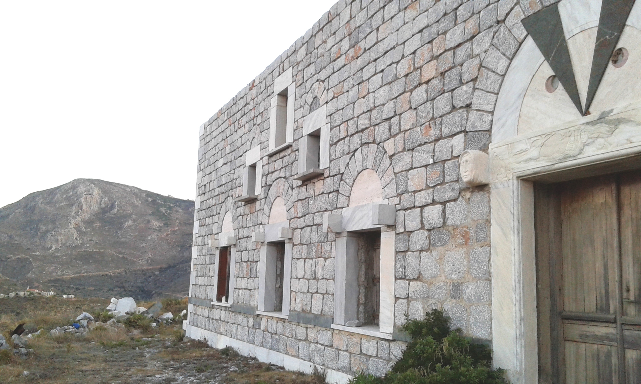 Νερό σπάνιο, σκληρές πέτρες. Από παιδί βοηθούσα τον παππού μου να τις βγάλει, να τις σπάσει με τη βαριά, να τις ξετεχνέψει, να τις χτίσει. Κάποτε πετάχτηκε ένα κοφτερό χαλίκι από την βαριά και μου έσκισε το μέτωπο και τρέχαν αίματα. Μου λέει ο παππούς μου «Μη στενοχωριέσαι. Από εκεί θα μπει βαθιά σου η τέχνη.» Μαλακιά πέτρα δεν δούλεψα ποτέ. Δούλεψα κροκεάτη λίθο, που ο Παυσανίας λέει πως δεν δουλεύεται με τίποτα. Δούλεψα ακόνια. Δούλεψα πολλές πέτρες Ικαρίας. Είναι όλες γρανιτόπετρες σχιστολιθικές κυρίως και κανένας Ικαριώτης σπουδαίος μάστορας - και έχει πολλούς - δεν επιχείρησε να κάνει έστω και ένα απλό έργο τέχνης. Γιατί οι περισσότερες χαράζουν το γυαλί, το οποίο έχω δουλέψει. Από παιδί έμαθα καλά τη γλώσσα της κάθε πέτρας. Το μάρμαρο για μένα είναι ψωμοτύρι. Είναι και ακριβό.